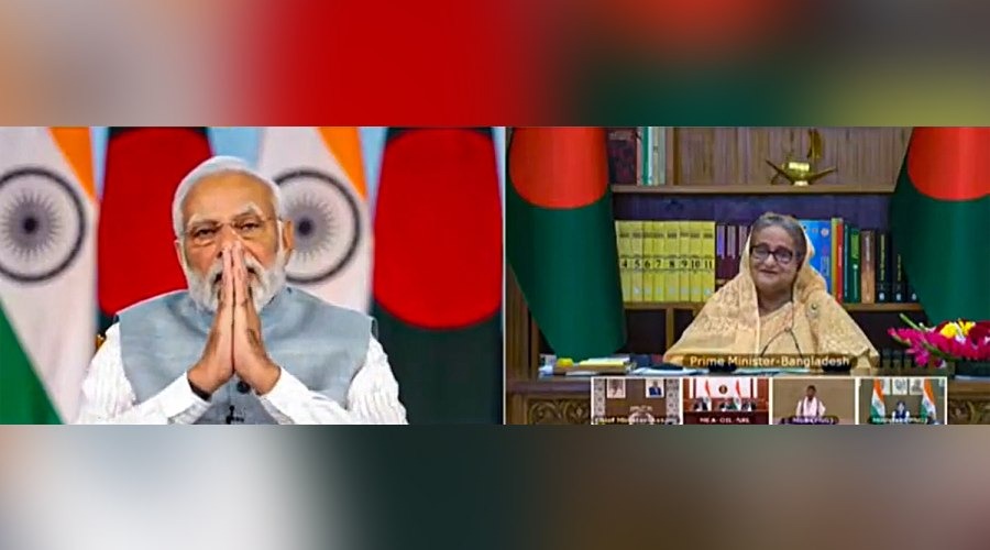 নরেন্দ্র মোদি এবং বাংলাদেশের প্রধানমন্ত্রী হাসিনা যৌথভাবে প্রথম আন্তঃসীমান্ত ‘মৈত্রী পাইপলাইন’ উদ্বোধন করলেন