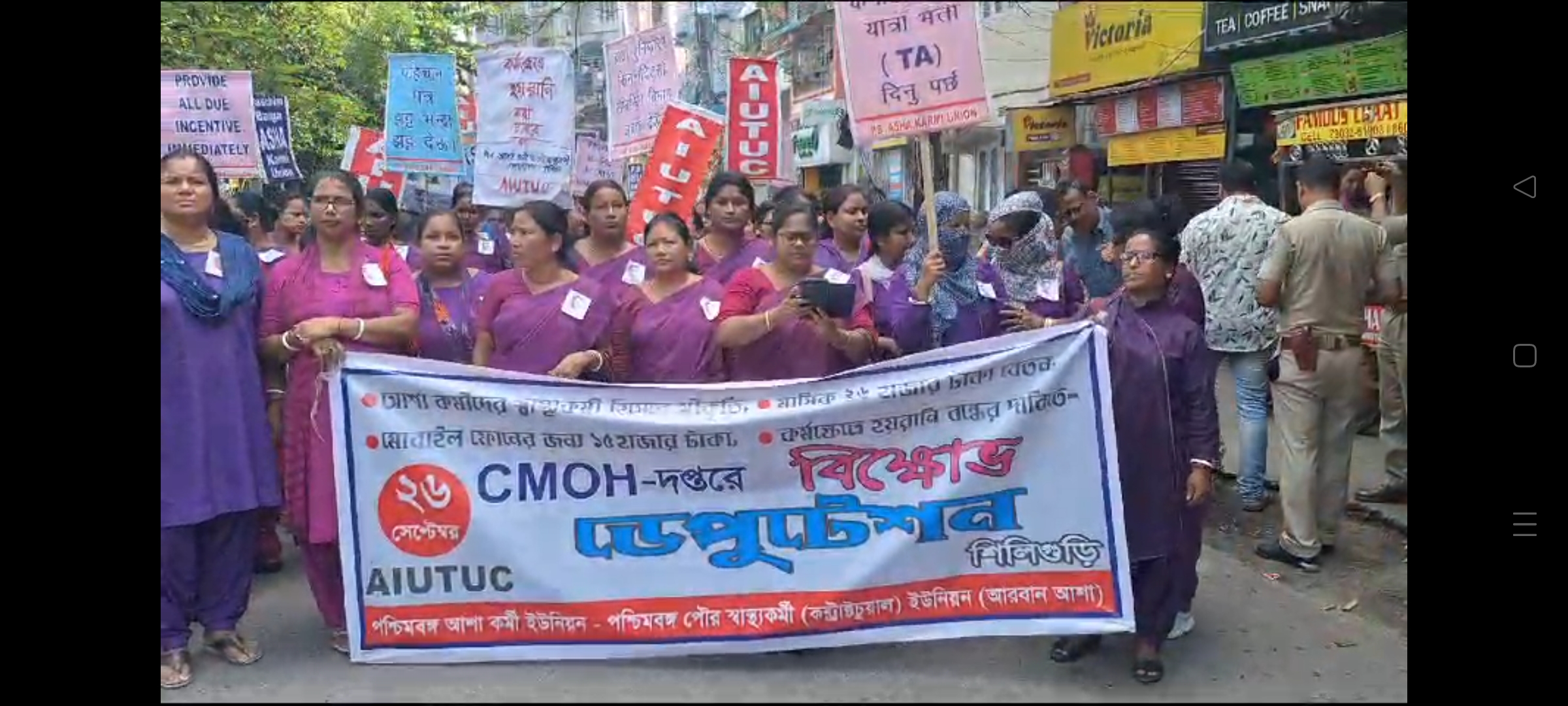 বেতন বৃদ্ধির দাবি সহ একাধিক দাবিতে ফের একবার বিক্ষোভে সামিল হল আশা কর্মী ইউনিয়ন। তারা জানান, ঝড়, বৃষ্টি রোদে দিন রাত লাগাতার তারা কাজ করে চলেছে তবে এই চলতি সময়েও তাদের মাত্র সাড়ে চার হাজার টাকা বেতন দেওয়া হয়, এর আগেও তারা বহু বার বেতন বৃদ্ধির দাবি সহ তাদের একাধিক দাবি প্রশাসনের কাছে তুলে ধরেছিল, তবে তার পরেও তাদের কোনো রকম সুরাহা মেলেনি, ফলে বাধ্য হয়ে তারা ফের একবার বিক্ষোভে সামিল হয়েছে। মঙ্গলবার শিলিগুড়ির বাঘাযতীন ময়দানের সামনে থেকে আশা কর্মীদের একটি বিক্ষোভ মিছিল বের হয়, সেই মিছিলটি হাসপাতাল মোড় হয়ে হাসমি চকে পৌঁছালে, সেখানে গিয়ে হাসমি চকে পথ অবরোধ করে বিক্ষোভে সামিল হয় তারা, প্রাই বেশ কিছুক্ষণ পথ অবরোধ করে রাখার পর পুলিশের অনুরোধে পথ অবরোধ থেকে সরে যায় তারা ও সেখান থেকে শিলিগুড়ি মহকুমা পরিষদের সামনে গিয়ে আশা কর্মীদের চারজনের এক প্রতিনিধির দল সিএমএইচও এর কাছে তাদের দাবিদাওয়া সম্মিলিত একটি স্মারকলিপি তুলে দেয়।