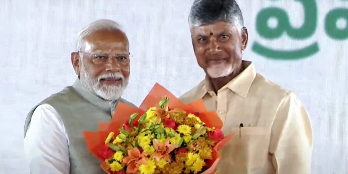 অন্ধ্রপ্রদেশের মুখ্যমন্ত্রী হিসেবে শপথ নিলেন চন্দ্রবাবু নাইডু। এই নিয়ে চতুর্থবার মুখ্যমন্ত্রীর চেয়ারে বসলেন টিডিপি প্রধান। লোকসভা নির্বাচনের সঙ্গেই বিধানসভার নির্বাচন হয় অন্ধ্রপ্রদেশে। ৪ জুন ফলাফল দেখা যায় একক সংখ্যাগরিষ্ঠতা পেয়েছে তেলুগু দেশম পার্টি। প্রসঙ্গত, ১৭৫ আসনের অন্ধ্র বিধানসভায় বিজেপি, টিডিপি ও জন সেনা জোট ১৬৪ আসন জিতেছে। বুধবার বিজয়ওয়াড়ায় মুখ্যমন্ত্রীর শপথগ্রহণ অনুষ্ঠানে উপস্থিত ছিলেন প্রধানমন্ত্রী নরেন্দ্র মোদি, স্বরাষ্ট্রমন্ত্রী অমিত শাহ ও স্বাস্থ্যমন্ত্রী জেপি নাড্ডা, সড়ক ও পরিবহণ মন্ত্রী নীতীন গড়কড়ি। এদিন মুখ্যমন্ত্রী হিসেবে শপথ নেওয়ার পরই চন্দ্রবাবু নায়ড়ুকে অভিনন্দন জানান মোদি। এদিন নায়ড়ুর ছেলে নারা লোকেশ ও জন সেনা প্রধান পবন কল্যাণও শপথ নিয়েছেন। কল্যাণই সম্ভবত অন্ধ্রপ্রদেশের উপমুখ্যমন্ত্রী হবেন। এদিন মন্ত্রিসভায় আরও ২৪ জন সদস্য শপথ নেন।